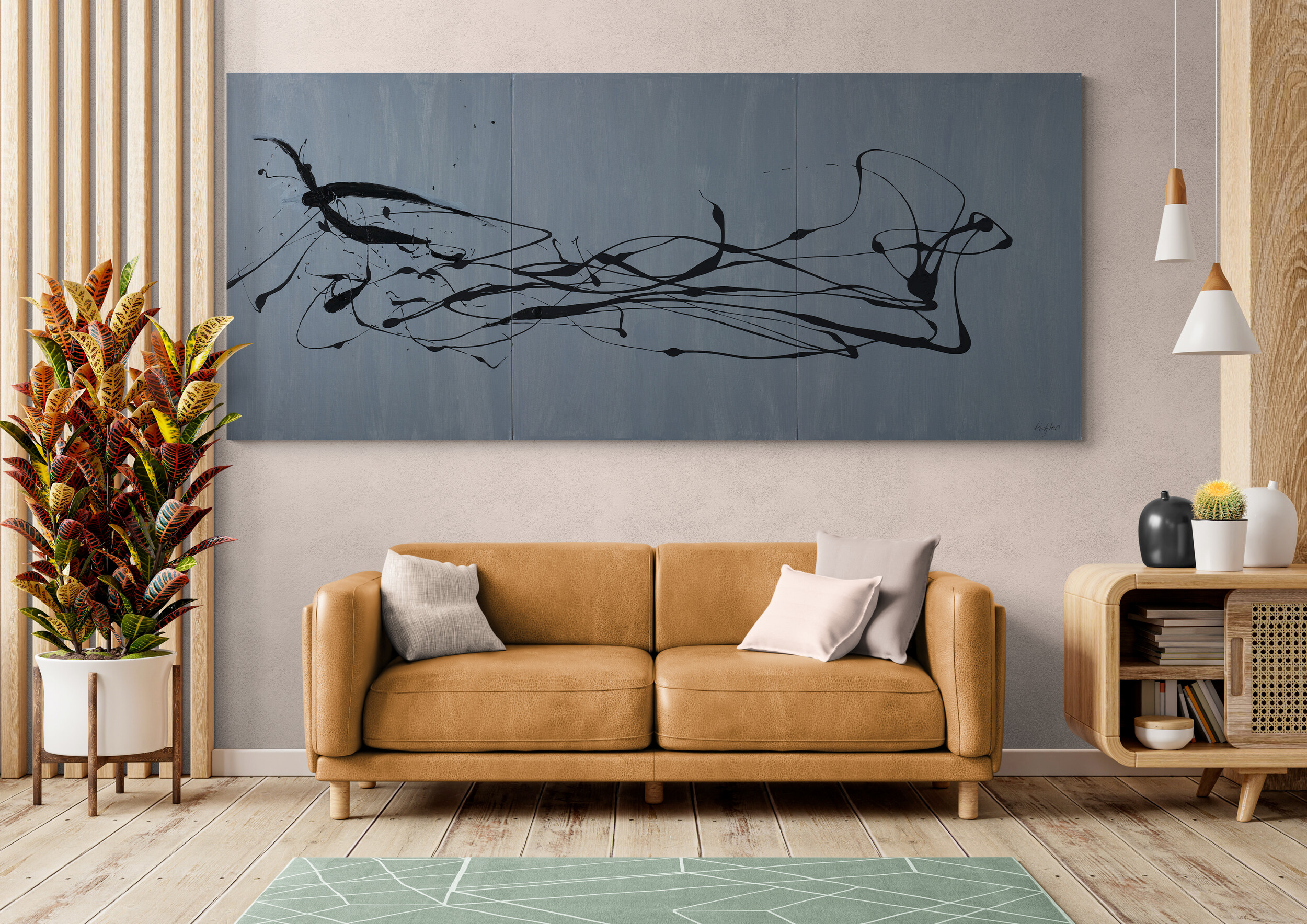 Tiefgrau und Gold im Dialog mit Schwarz – Constellation Norwana fasziniert durch kosmische Eleganz. Originalgemälde von Alfred Lichter.