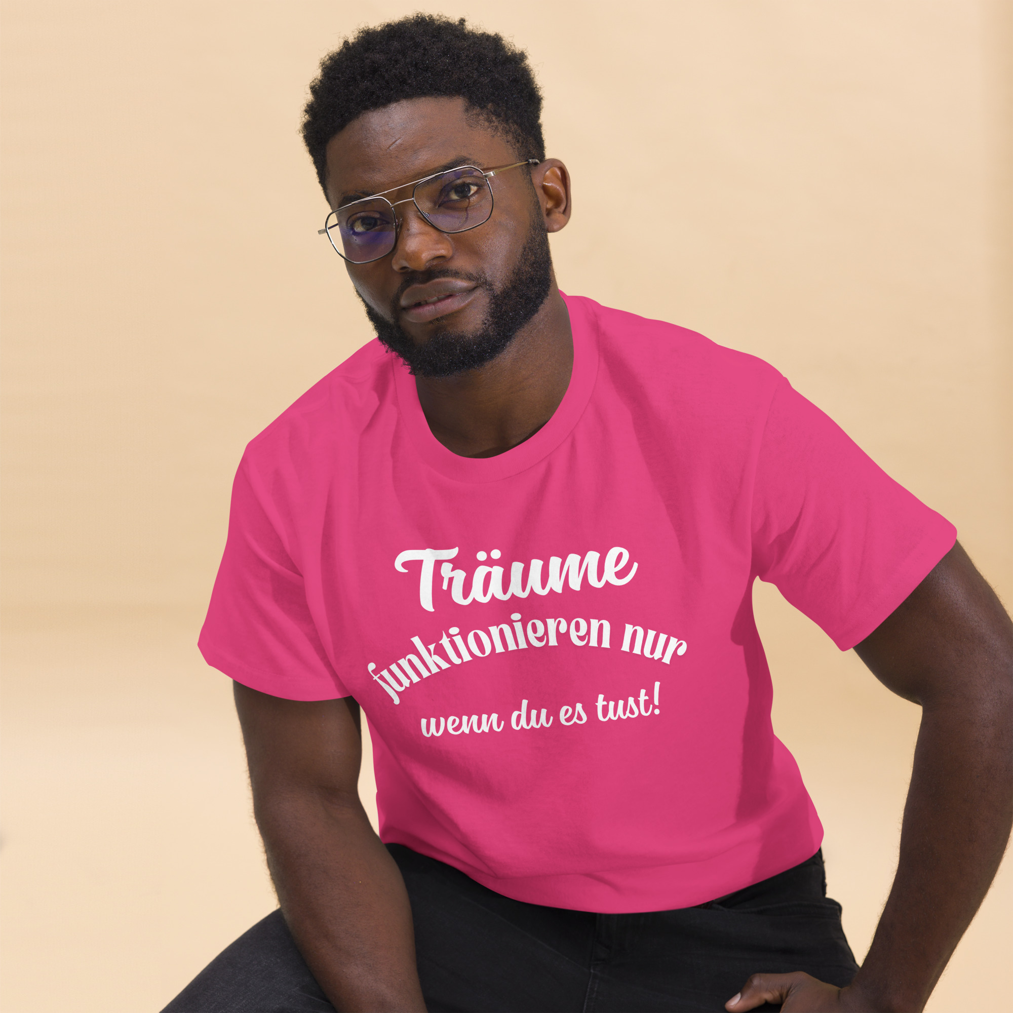 Das klassische Unisex-T-Shirt aus 100 % Baumwolle sorgt für eine gerade Linie. Es sitzt schön, behält klare Linien an den Kanten und passt perfekt zu mehrschichtigen Streetwear-Outfits. Außerdem ist es jetzt besonders im Trend!